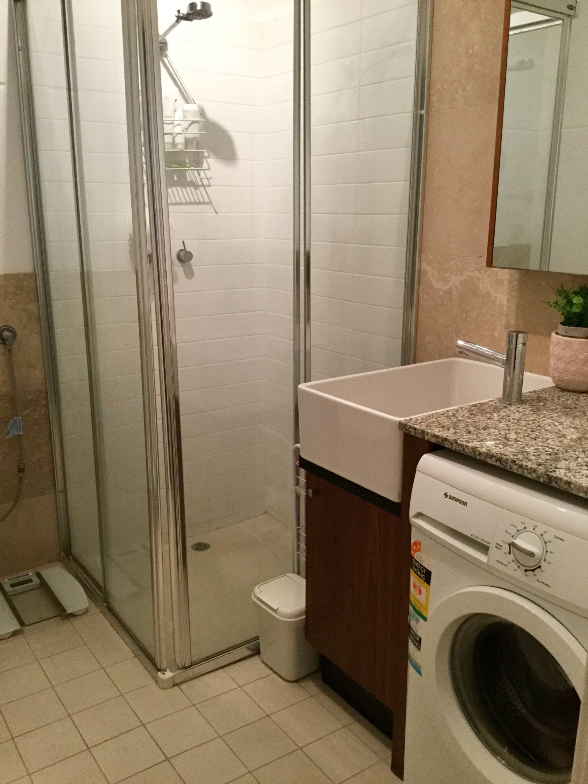 * Laundry in Bathroom.