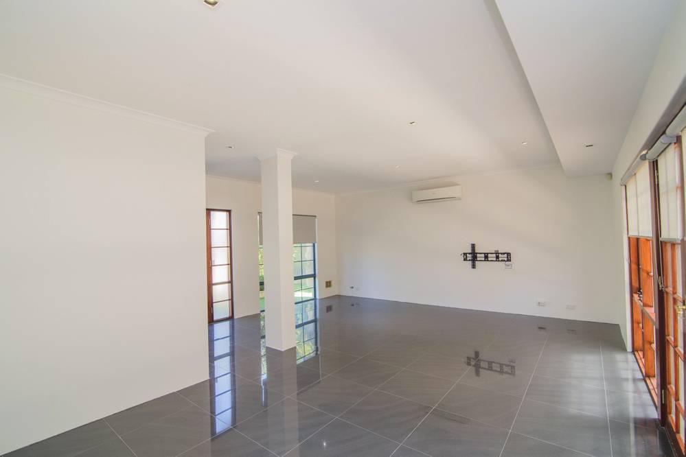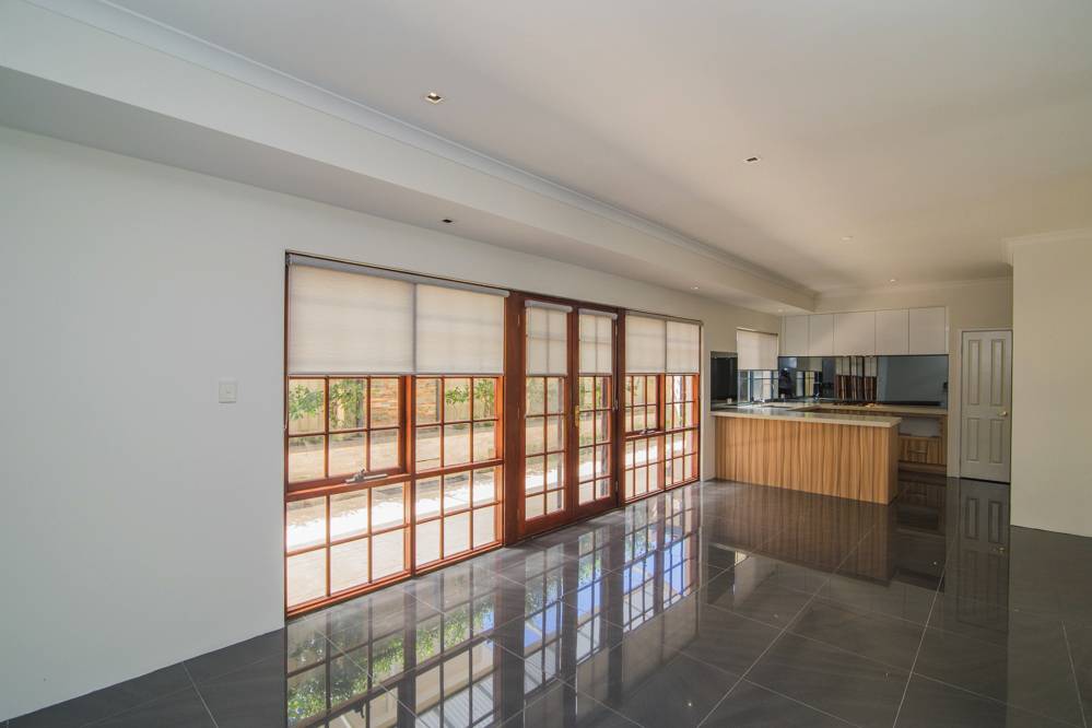 Inside consists of Porcelain tiles throughout the lower floor. Huge Family meals area. Wooden French doors leading to outdoor entertaining area.  TV mounts already installed. High Ceilings throughout. Gas cooking, lots of over head cupboard space in lovely modern kitchen.  Split system air conditioners throughout.