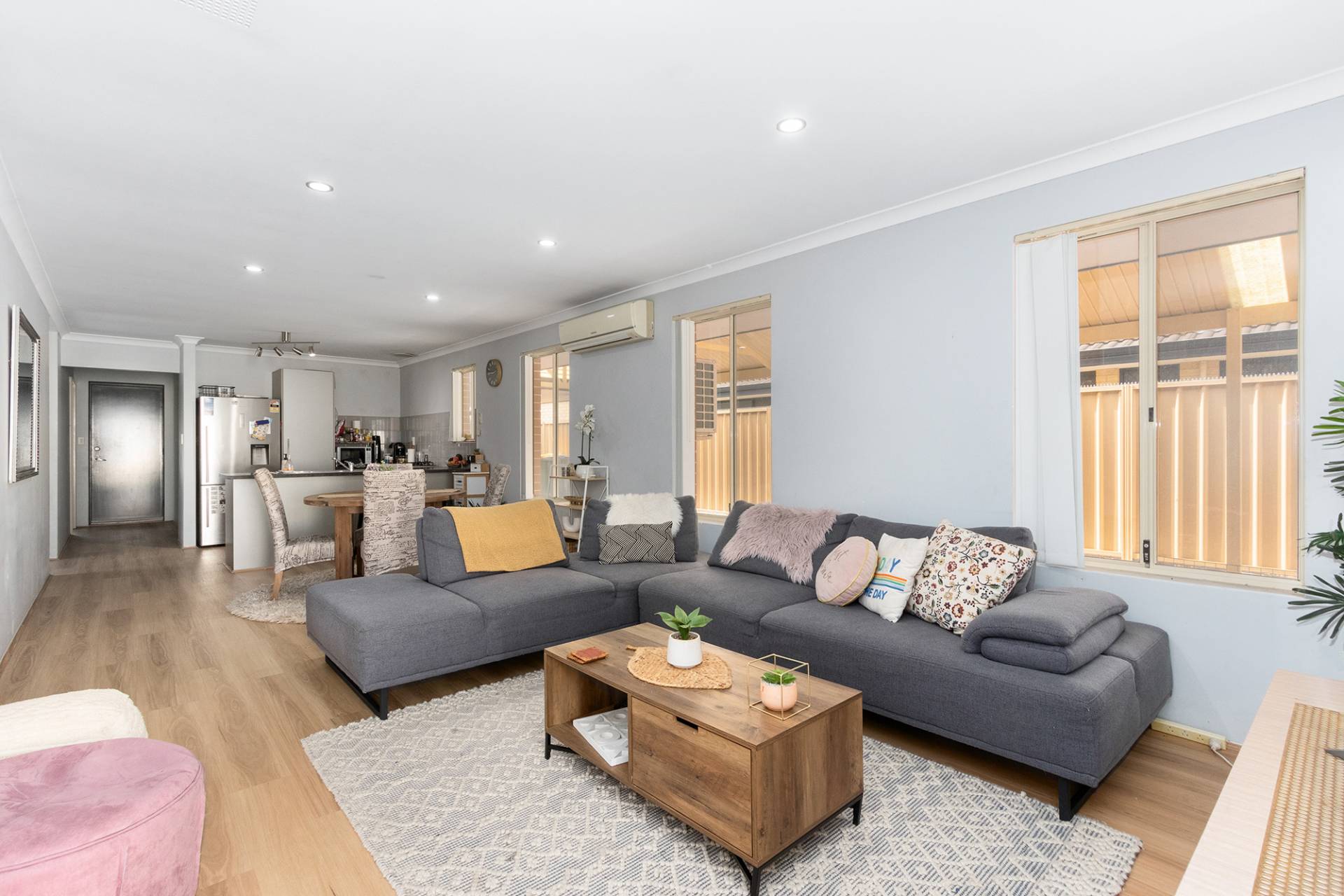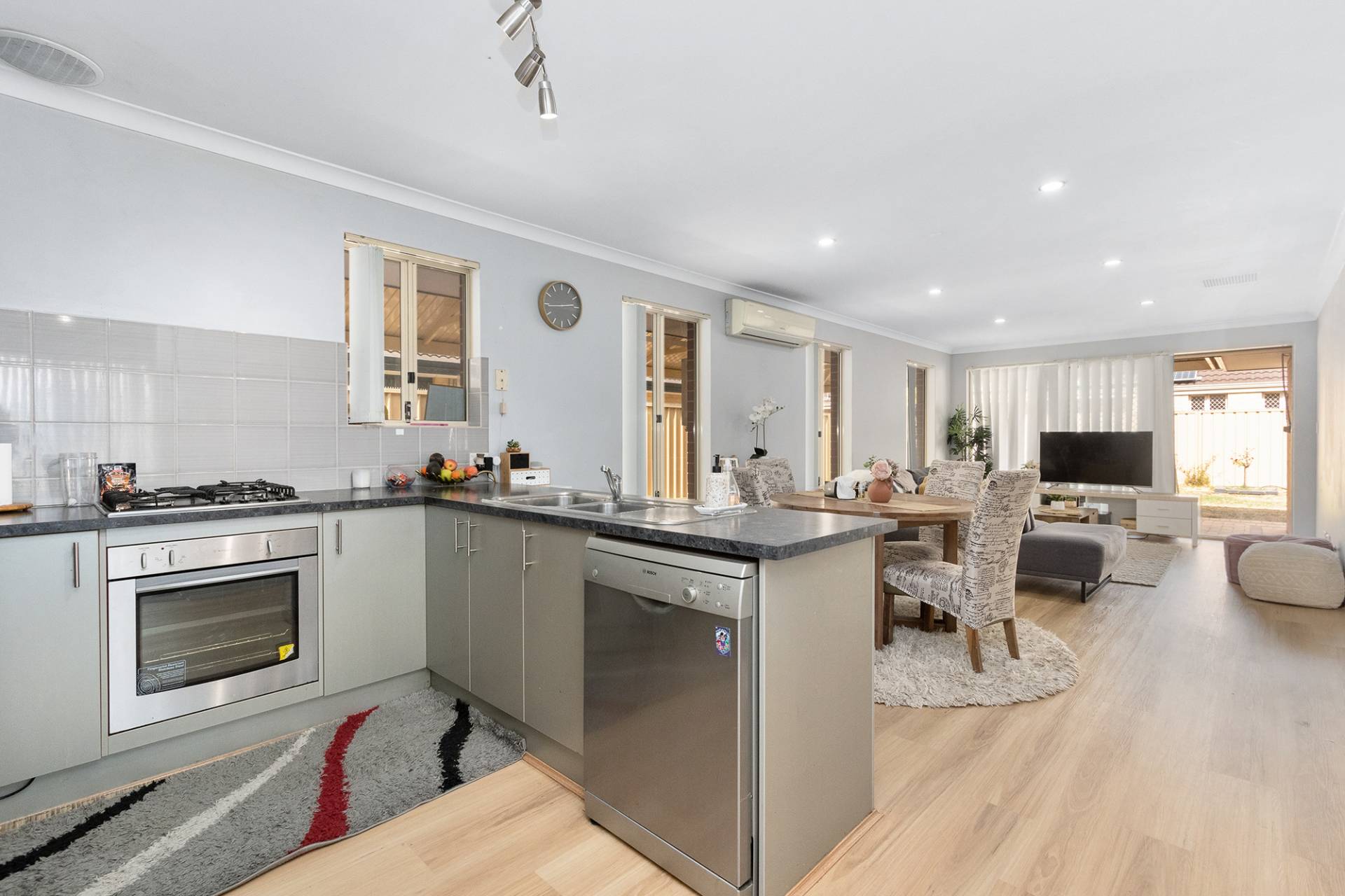 Open plan kitchen and living area. Split system A/C, gas cooktop and dishwasher. Master bedroom with split system A/C and walk in robe. Bedrooms 2 and 3 with built-in robes.