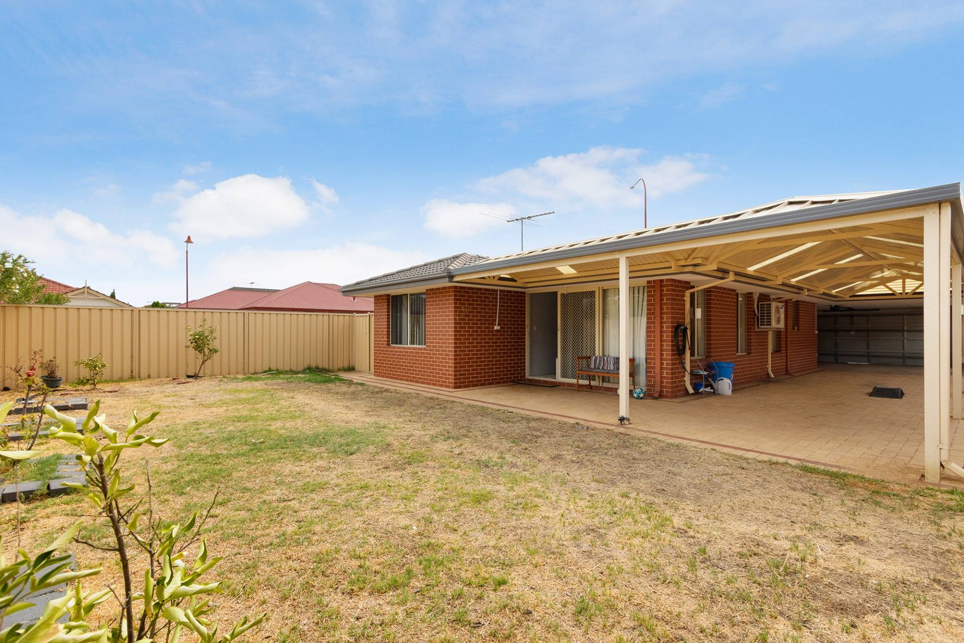 Super spacious backyard with loads of potential to make this a great area for the children to play. Large pitched patio extends from the double remote garage with drive through access onto the extensively paved area.